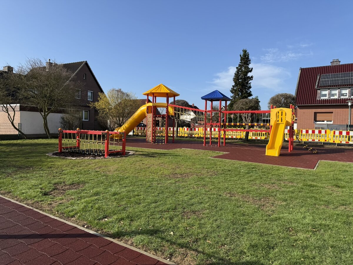 Aufgebaut wurden die Geräte bereits im August/September. Jedoch musste sich der neu gesäte Rasen erst etablieren. So hieß es im Herbst und Winter: "Nur gucken, nicht anfassen!" Der Rasen konnte durch die Schonzeit und die warmen Tage im März gut anwachsen, sodass ein Betreten ab sofort möglich ist.