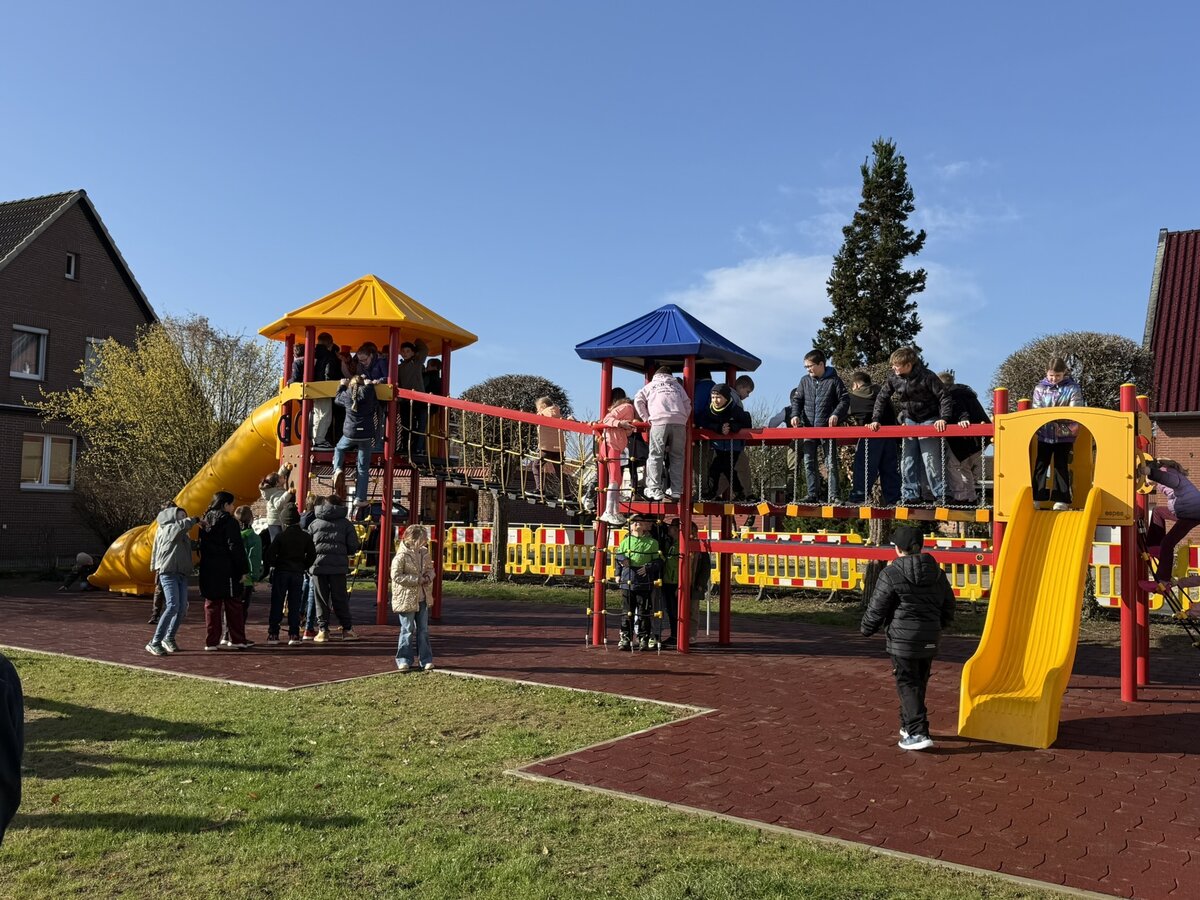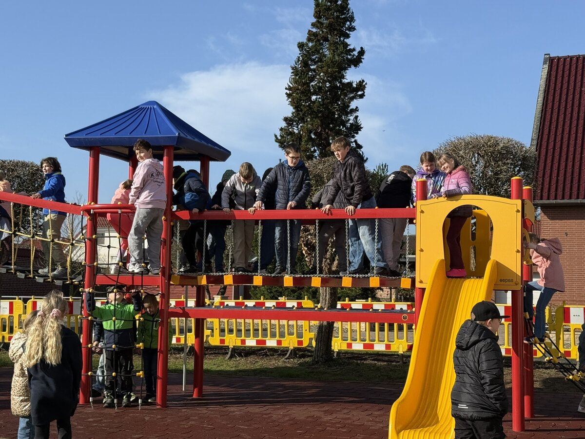 Wir freuen uns sehr, dass die Kinder ihre Bewegungspausen nun endlich wieder rutschend, kletternd und balancierend an der frischen Luft verbringen dürfen.