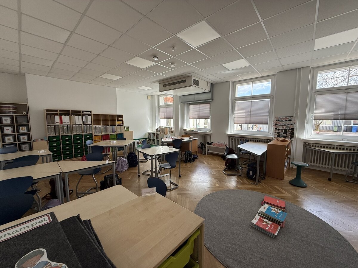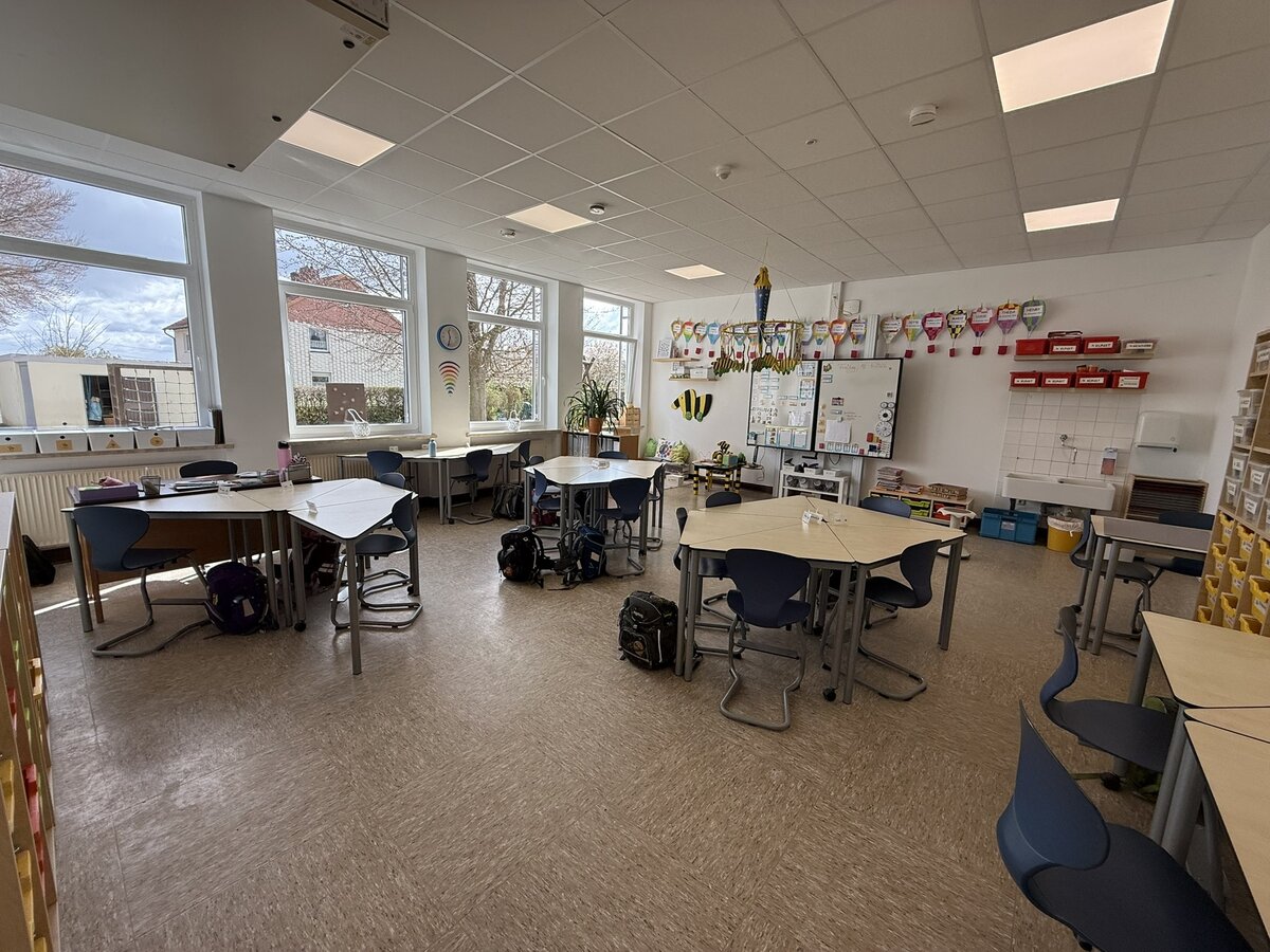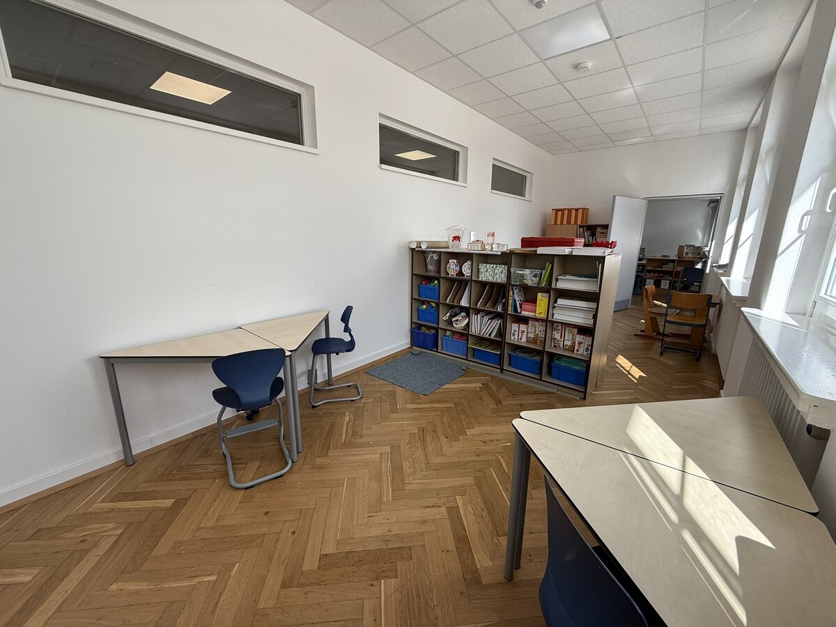 Die Hasen und Bären durften ihren renovierten Klassenraum wieder beziehen. Die frisch gestrichenen Wände und der wunderschön aufgearbeitete Holzfußboden geben den Räumen ein ganz neues, wohnliches Erscheinungsbild. Hier lässt es sich gleich doppelt so gut lernen.